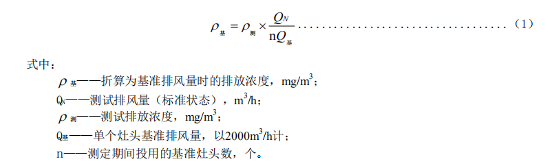 獲得油煙、顆粒物和非甲烷總烴的測試排放濃度后,應(yīng)將測試排放濃度折算為基準(zhǔn)風(fēng)量時的排放濃