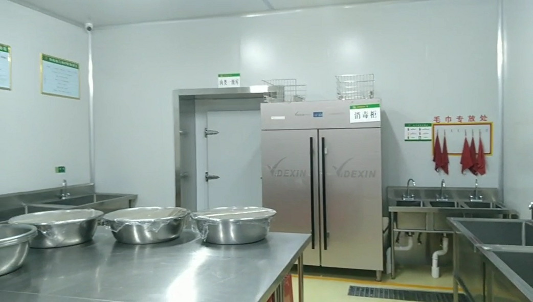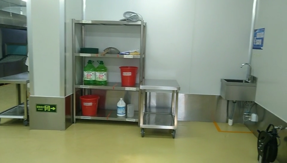 設(shè)備:單星水池、新興榮福全自動(dòng)洗箱機(jī)、洗碗機(jī)、新興榮福高溫?zé)犸L(fēng)循環(huán)消毒庫、沖地龍頭等。