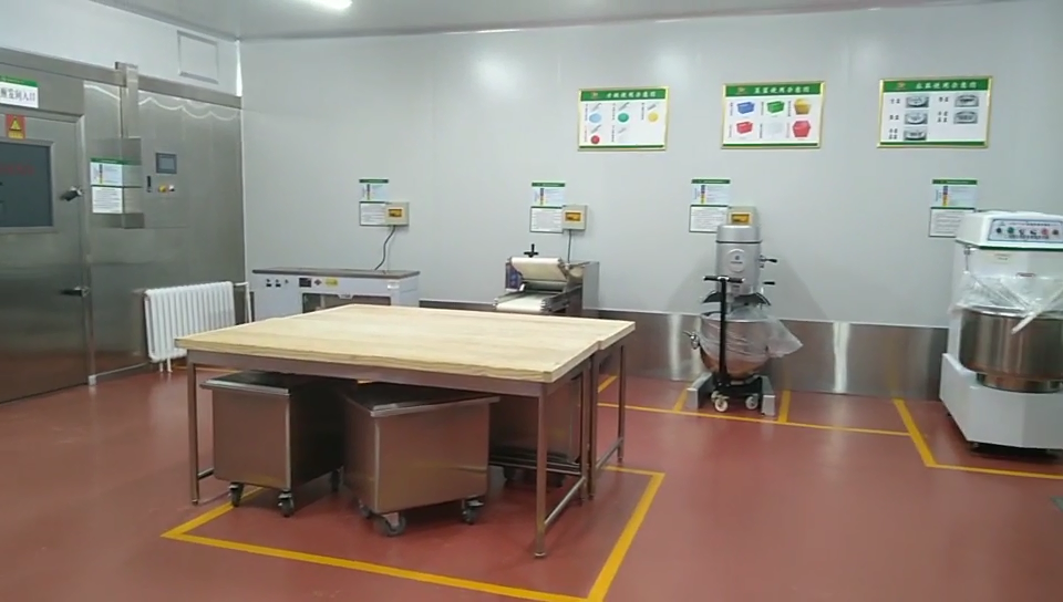 設(shè)備:雙星水池、調(diào)料柜、餅盆車、木面案板臺(tái)、面粉車、攪拌機(jī)、和面機(jī)、全自動(dòng)壓面機(jī)、面團(tuán)成型機(jī)、分離式切臺(tái)、自動(dòng)擺盤機(jī)、自動(dòng)給餡機(jī)等。油網(wǎng)煙罩、蒸箱、蒸汽發(fā)生器、油網(wǎng)煙罩、多層電焗爐、醒發(fā)庫、四層貨架等。